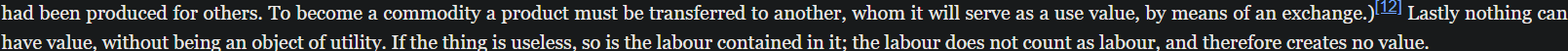 <Lastly nothing can have value, without being an object of utility. If the thing is useless, so is the labour contained in it; the labour does not count as labour, and therefore creates no value.https://www.marxists.org/archive/marx/works/1867-c1/ch01.htmyou can have one more chance, if you like.