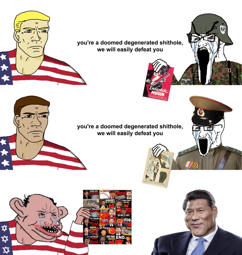 >>2548186I don't give a fuck, he's like a dog begging for a treat, shocked to find out that master only wants to kick him. I don't respect begging dogs, I respect dogs that bite.
