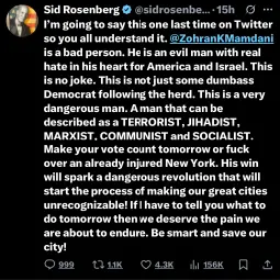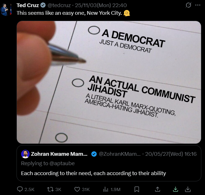 They are afraid that some of the things Mamdani want to do might work, especially considering the NYC budget, they are crazily afraid of free buses, free childcare and city controlled groceries with rents freezed