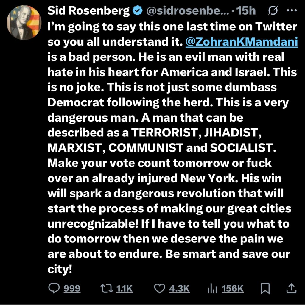 >Dave Portnoy said he may move Barstool out of NYC if Zohran Mamdani wins mayoral race. "Take a principled stand. Thirty-something-year-old Communist running New York City who's never had a job in his life, hates America, doesn't seem like the best."