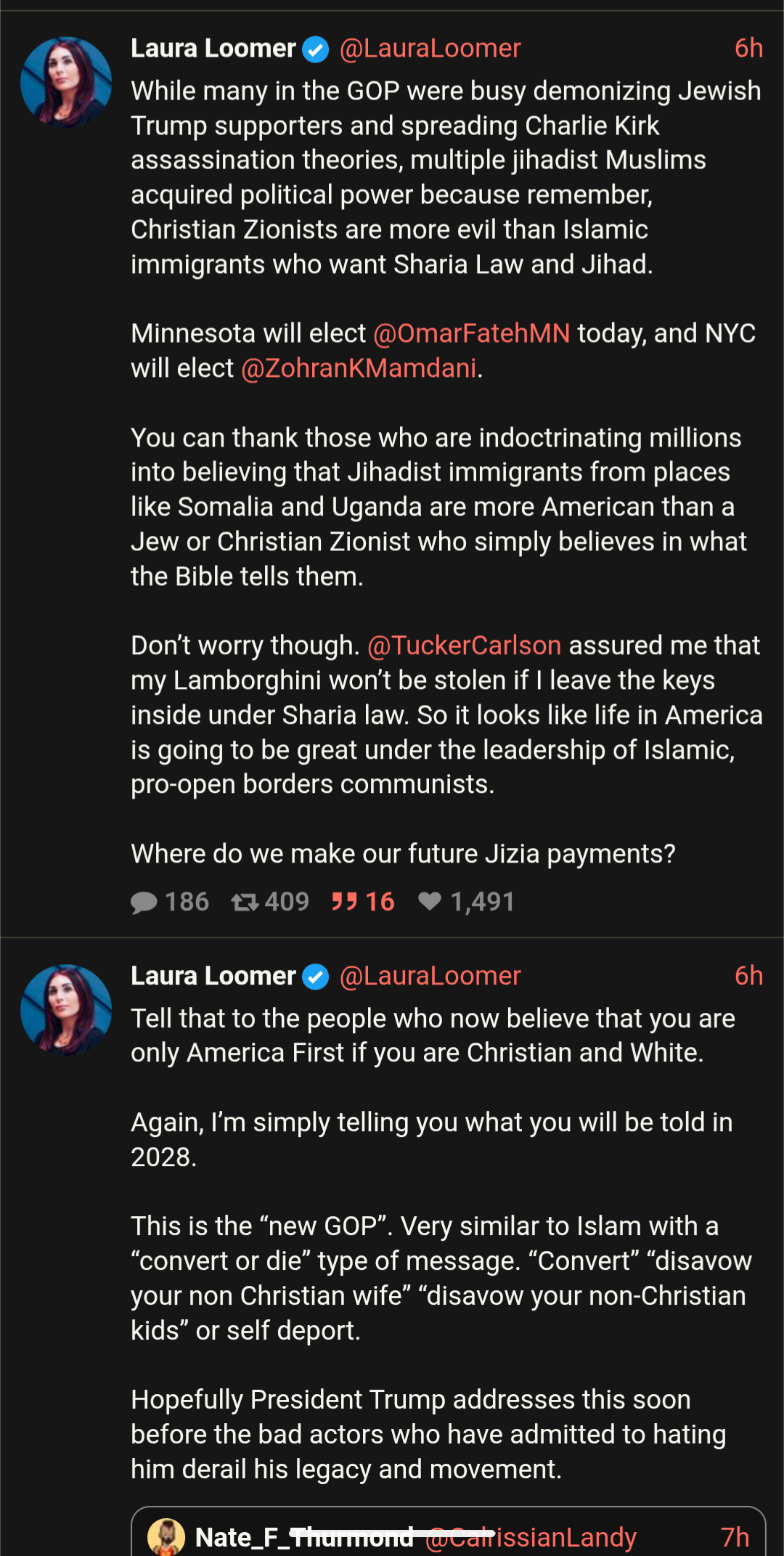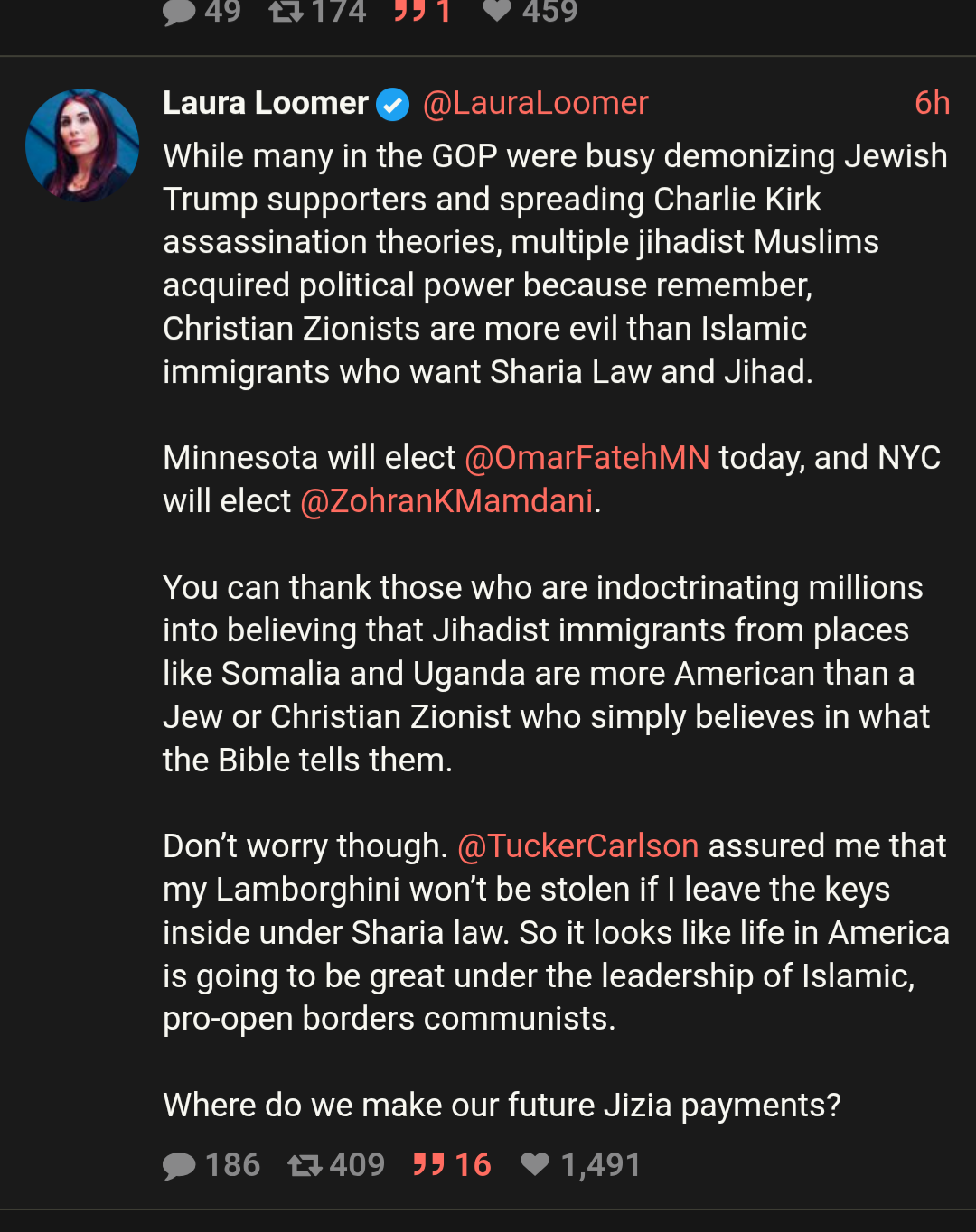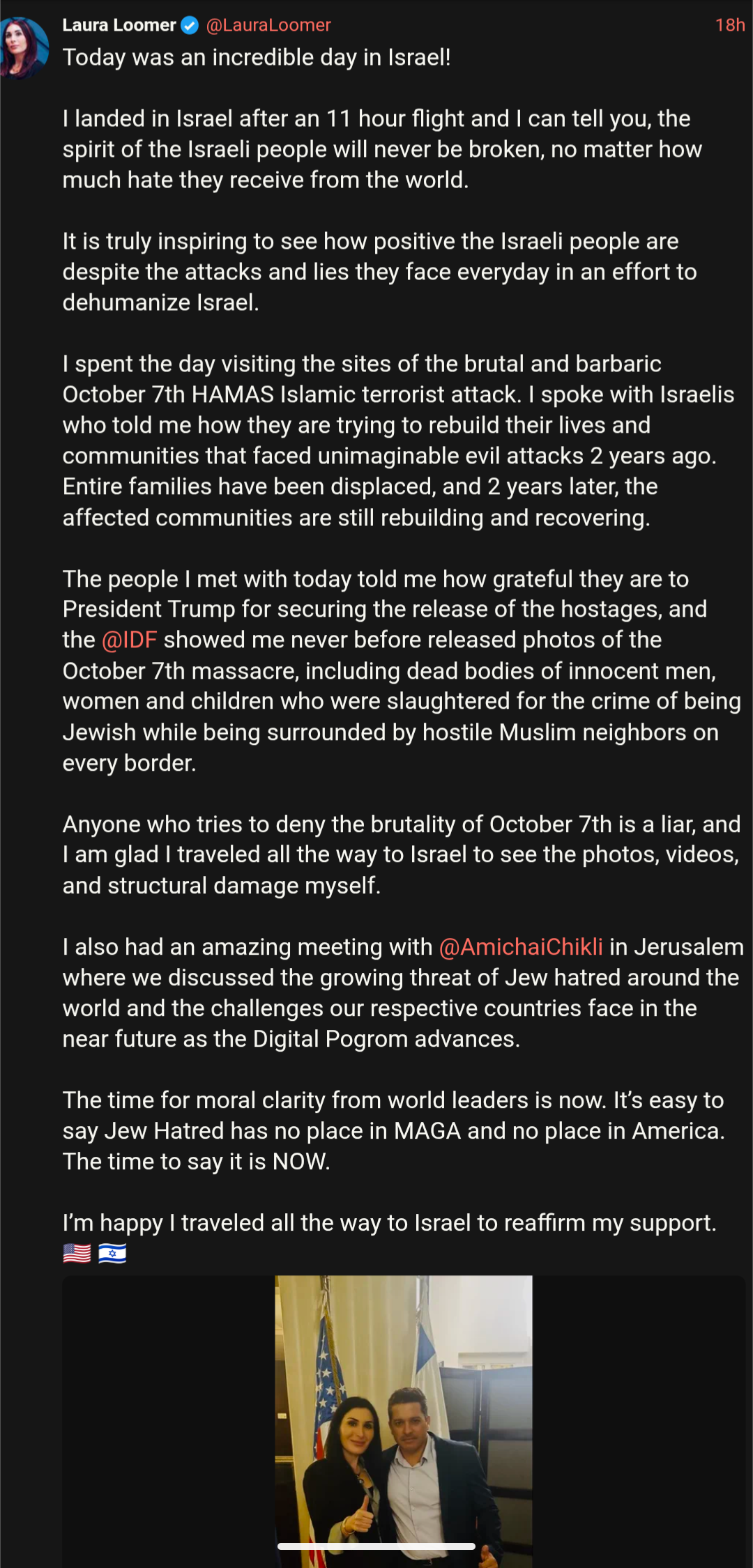 loomer pretends to be a 'nationalistic' right winger, to then suck to the bones every zionist dick her hialuronic-acid face can.