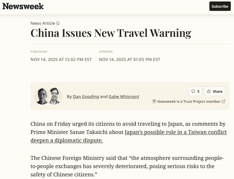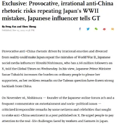 >China's state-run Global Times publishes an editorial questioning Japan's ownership of Okinawa