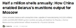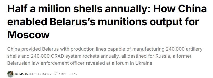>The BelPol representative revealed that Belarus was able to manufacture these blanks because China sold the country assembly lines for their production. "Belarusian engineers could not install this ammunition production line themselves. For this, China sent ten of its engineers to Belarus who installed it. It already exists. And a very interesting point is that China was so interested in installing this line that it has now placed its workers at two Belarusian enterprises, who sit at these enterprises and control the process," he emphasized.
