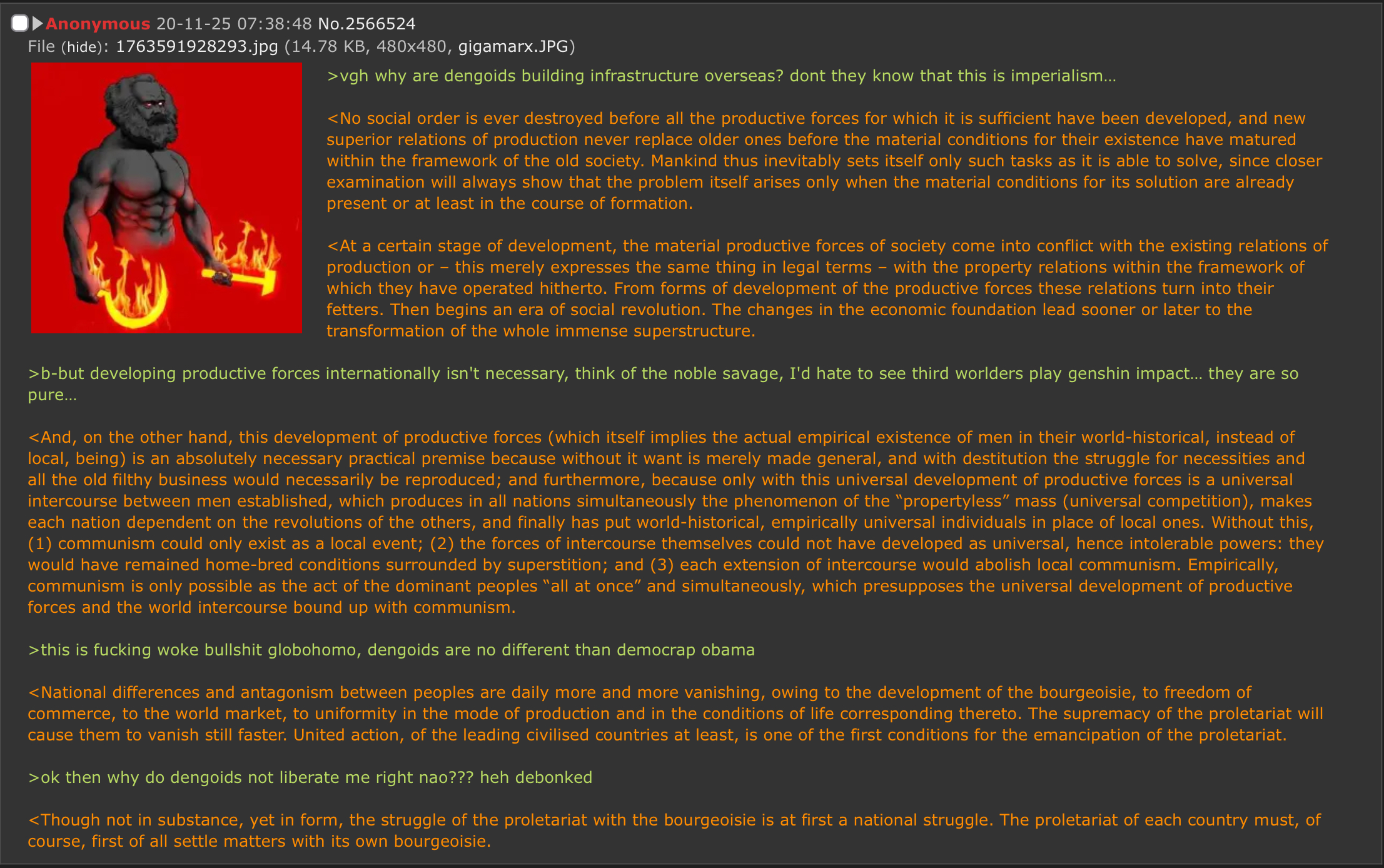 A question for the China haters: is your problem with China itself or with local dengoids? I understand not trusting people who want to copy dengism in the imperial core, but when it comes to China itself, even if you think they are revisionists and overall le bad, I think the chances of them correcting their course are interconnected with there being a change (hopefully towards socialism) in the imperial core.