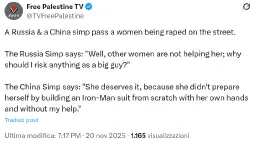 >>2567791No, it's more like Russia and China are walking past on the other side of the street, with a Jew raping the woman and a cheering group of Arabs surrounding them
