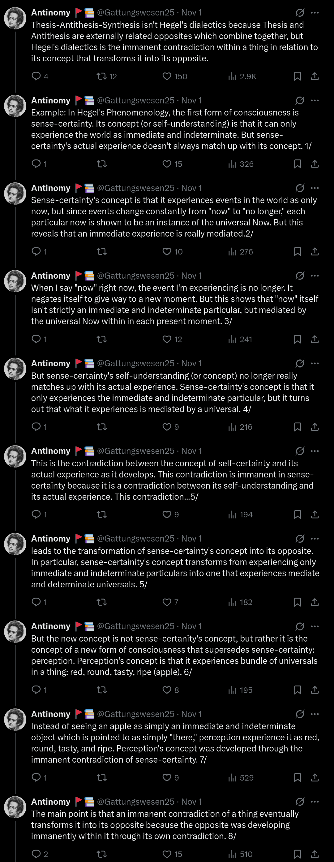 >>2548915See my above comment: I don't particularly find diagrams all that useful to understanding these concepts. One has to go through the entire process of misunderstanding in order to understand—which is to say, there's unfortunately no real replacement to really sitting down and reading it for oneself. That's not to discourage using secondary literature as much as possible though! I think Todd McGowan & Ryan Engley's podcast "Why Theory" remains the most accessible and easiest entryway into dialectical thinking