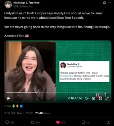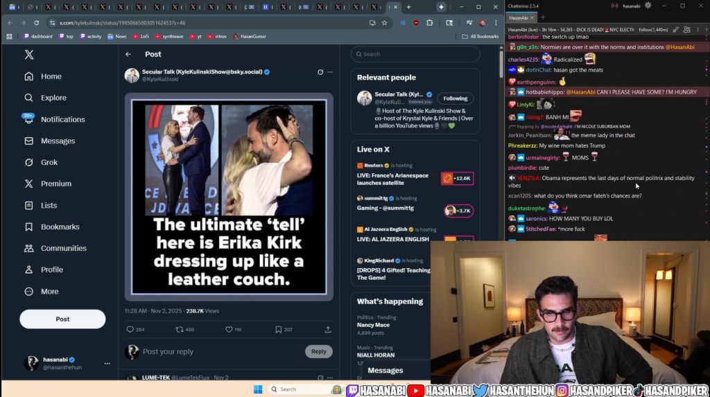 Anyone already got that clip of that bitch from the Free Press walking up to Hasan and he going like 'yeah I am familiar with your work denying the Gaza famine'?