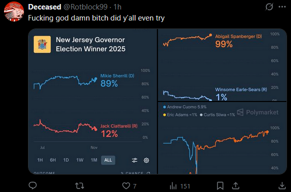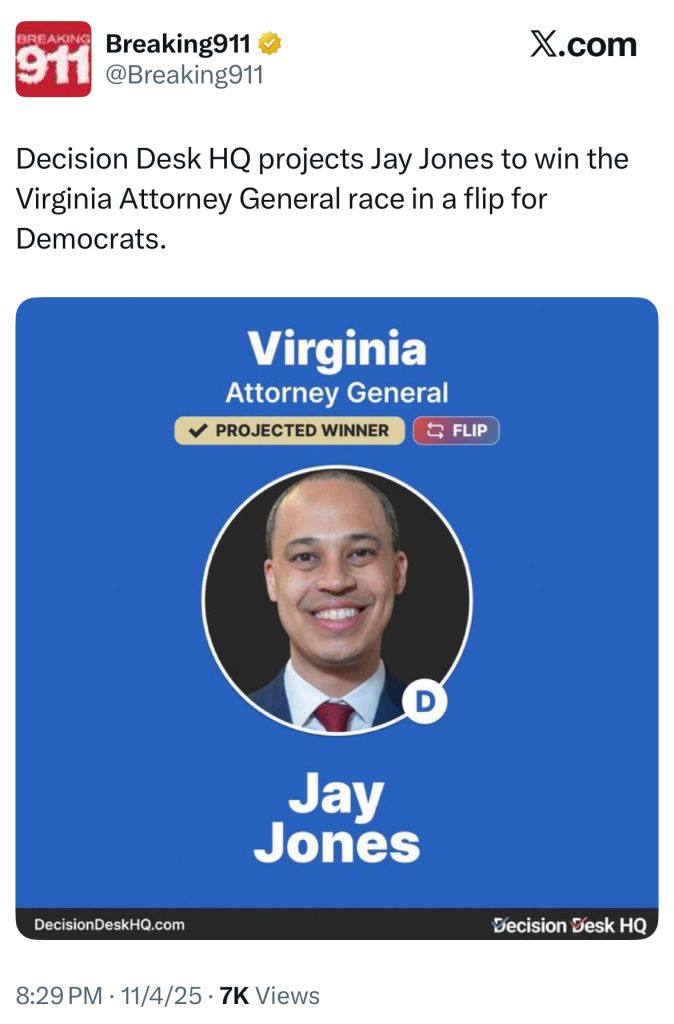 Well looks like it's gonna be a blowout for Spanberger. I know she's a fed but Windom Earl Sears is genuinely psychotic so I'll take what I can get