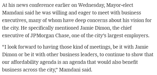 NYT afraid that Mamdani says he want to deliver what he promess 'An Emboldened Mamdani Sheds Conciliatory Tone
