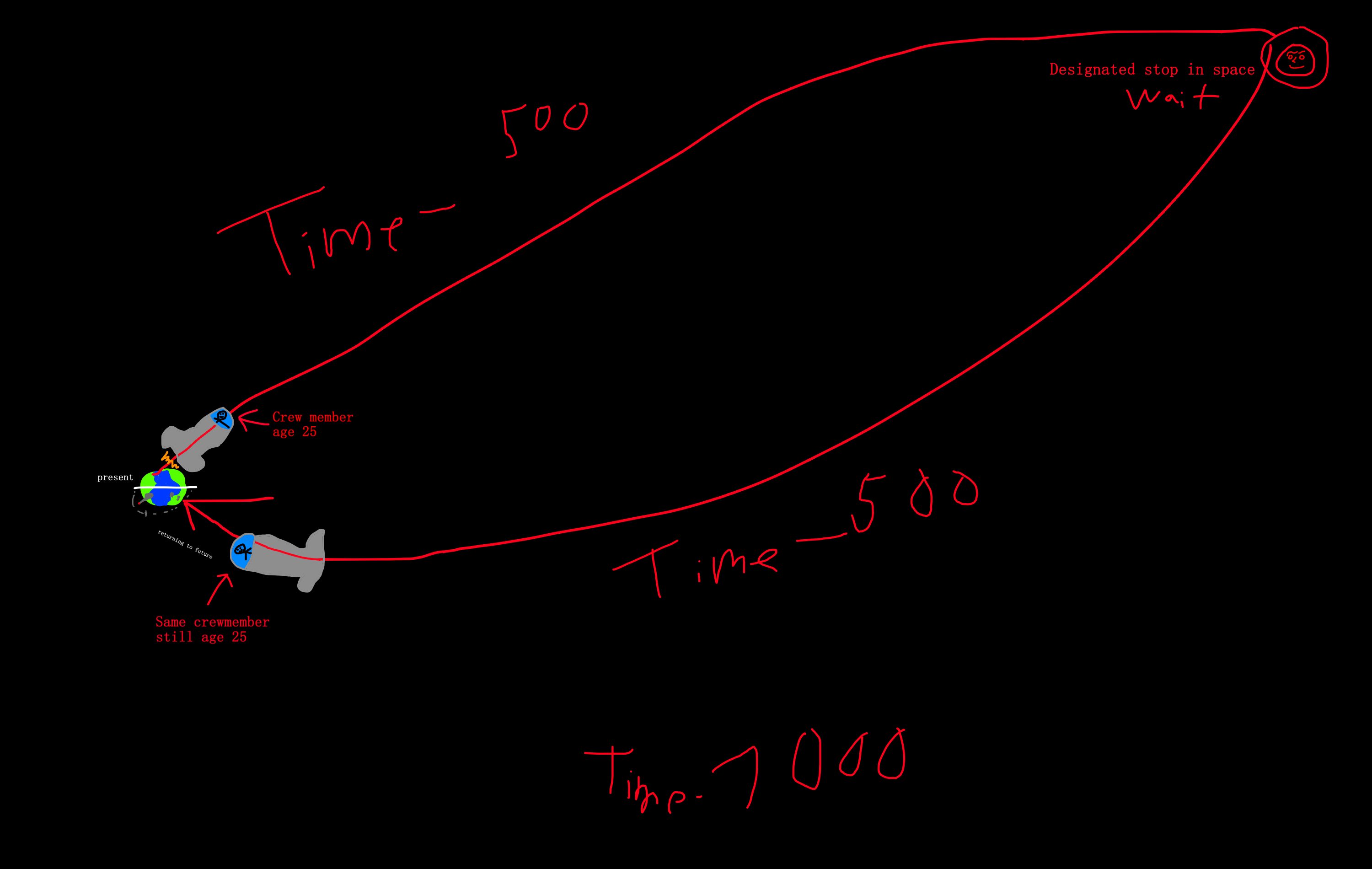 Imagine having the energy and the technology to accelerate a manned spaceship to relativistic speeds and travel to other stars and visit alien worlds that no one has ever seen before, but all you want to do is take a round trip to Earth 100 years in the future to find a cure for your ED.