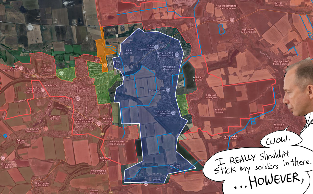 >>2552611the cauldron is practically closed and has been for a week at the very least. a 300m wide open field under fire control is just as dangerous as charging the enemy line, it isn't like hoi4 where you can move the division through the bottleneck at the last moment before the attrition effect kicks in