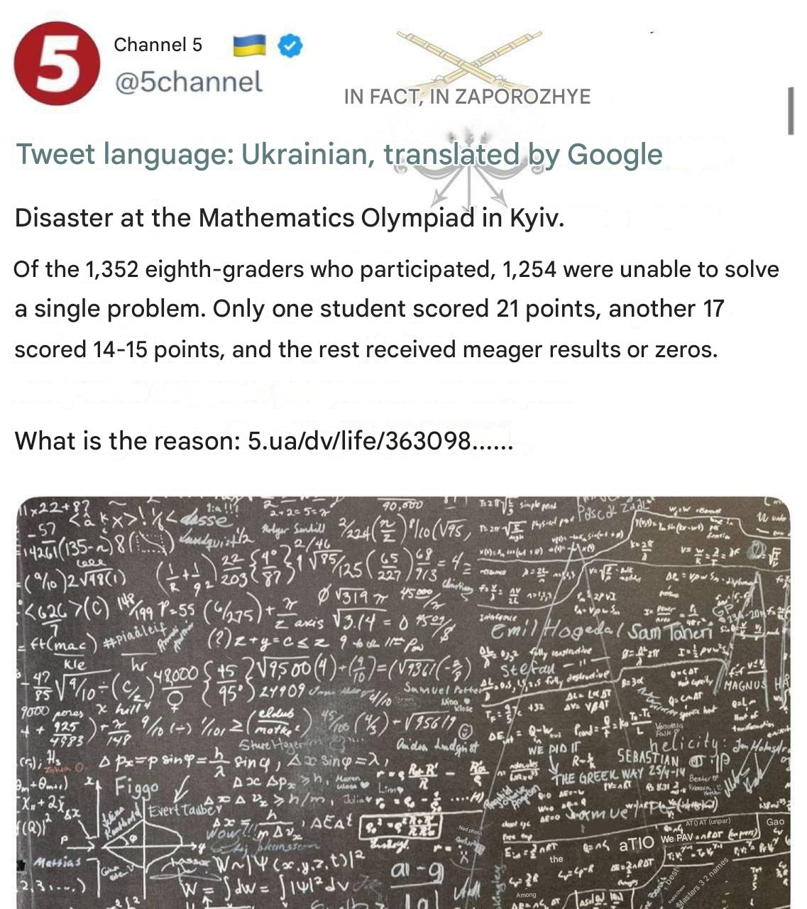 >The Telegraph: Of the 3.7 million men of draft age in Ukraine, more than half a million are in hiding, fearing being sent to the front.