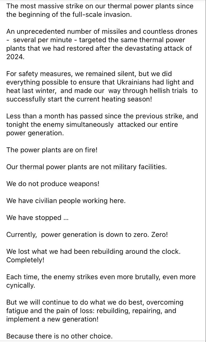 >According to him, after the imbalance in the power grid and a total blackout, even nuclear power plants will be unable to operate.