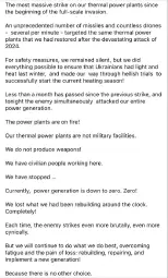 >The Slavyansk Thermal Power Plant was bombed, Zelensky said.