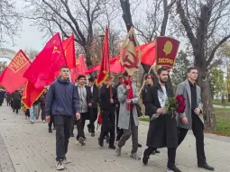 Here after Russian police arrested people for putting flowers in a October revolution statue lmao