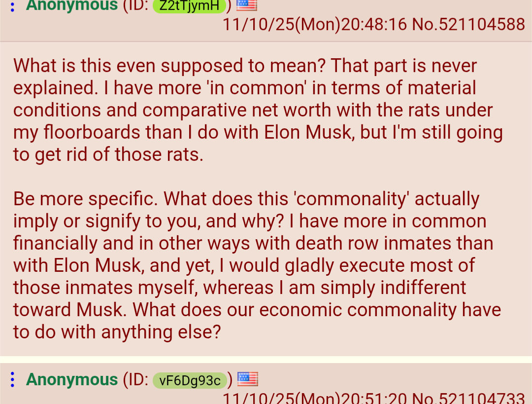 >>2556740You made the fatal assumption they see their black neighbor as more than just a rat or a death row murderer. Turbo reactionaries don’t think that way.