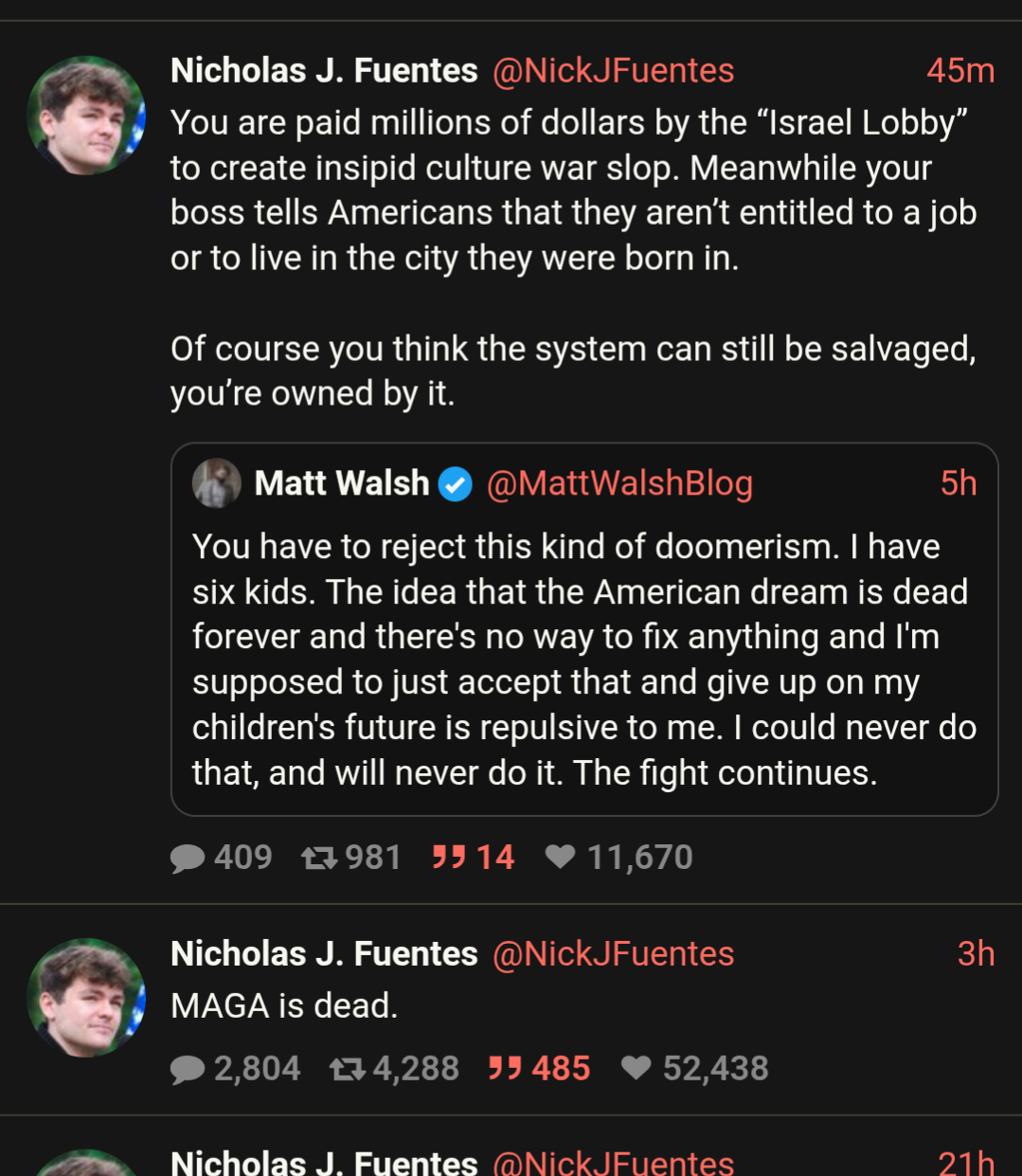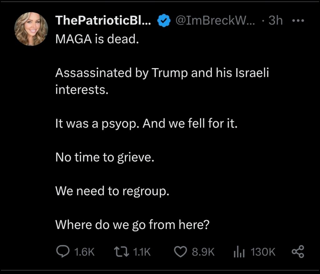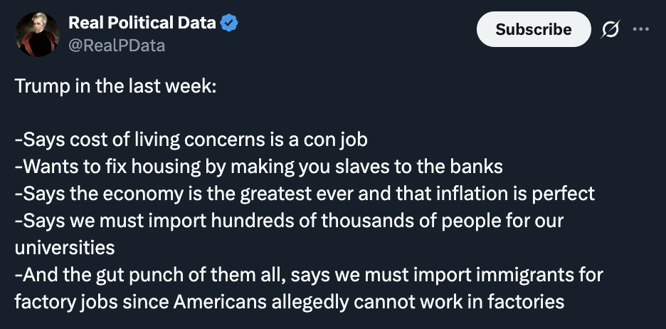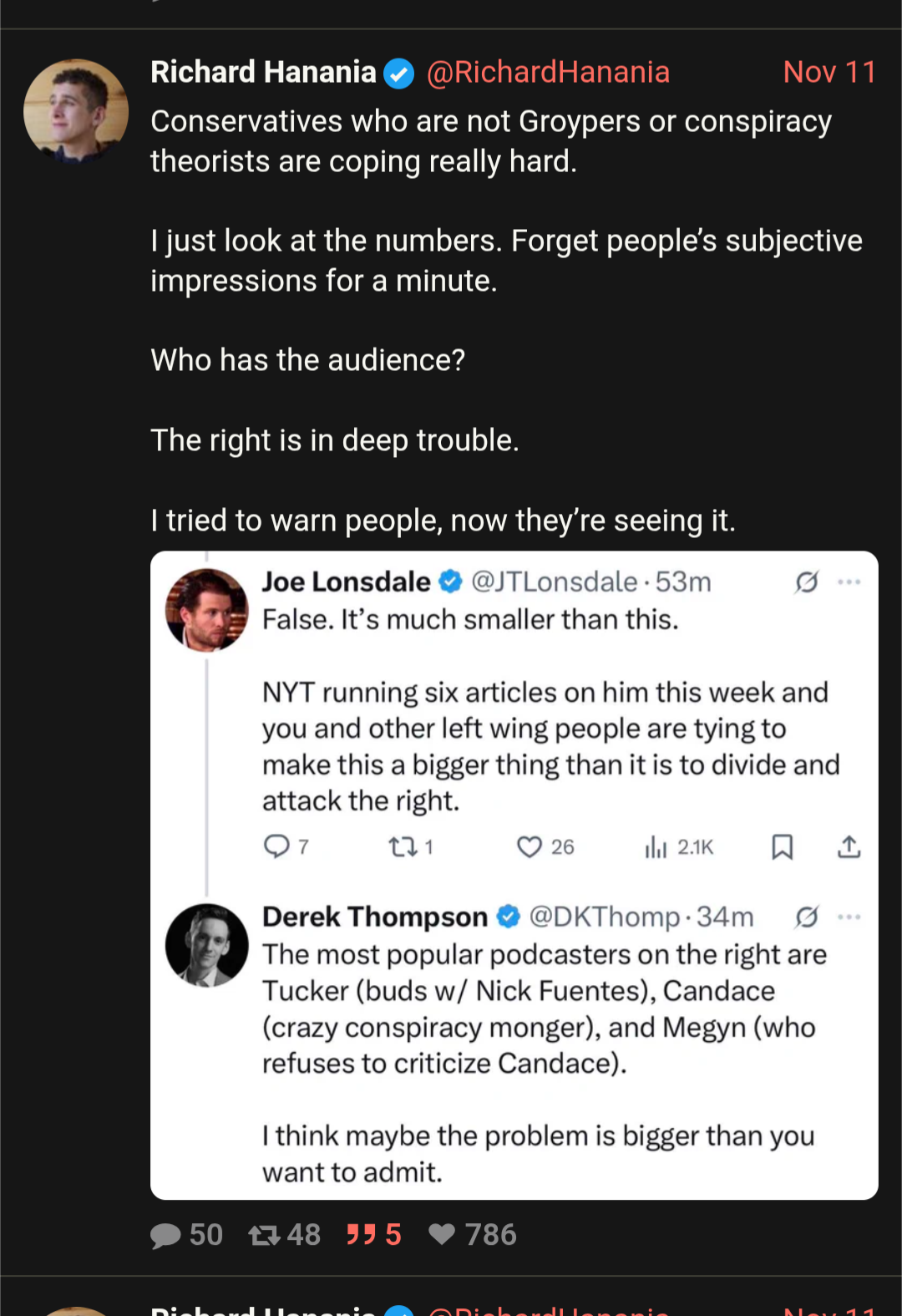 Mainstream MAGA has already fully adopted 1-4. These also are part of the worldview of what are called “dissident right” or “national conservatism,” with broadly defined race being an arguable sticking point. Only 5 is left to fight about.