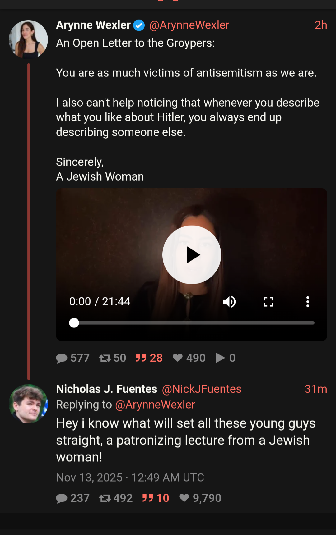>>2557965Where did you assert that I like Nick or any other of these nazoids from this