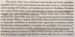 >Kautsky wrote that the positive side of the conflict, namely that it was a ‘war against the Russian Tsar’, was contradicted by the negative side, that it was a war ‘also against the democracies of England and France’. Whatever these contradictions, however, in practice he spoke of the ‘necessity of defending one’s own homeland’, while nevertheless noting that this task created a ‘fatal dilemma’ between national loyalty and ‘international solidarity’ (…) Cancelling any force to what he had called the ‘dilemma’ between national defence and internationalist solidarity, he wrote in September 1914 that in reality there was no contradiction between the two terms. Indeed, the German Social Democrats and French Socialists, ‘without the slightest enmity towards their brothers across the border’, had each voted for war credits in order to provide the means for the defence of their respective nations. Shortly thereafter he wrote that once the war had actually begun only one question remained: ‘victory or defeat?’ The possibility of working for ‘the defeat of one’s own land’, he said, should be ruled out completely. The main problem was to ensure that defence was understood in terms of the democratic principles of the ‘independence and territorial integrity of the nation’. Since the war was an accomplished fact, the various socialist parties should prepare a ‘democratic peace’, making sure that their own respective governments would not practice an imperialist and annexationist policy. Kautsky therefore recommended not Germany’s ‘isolation’ but its ‘concord’ with the other world powers