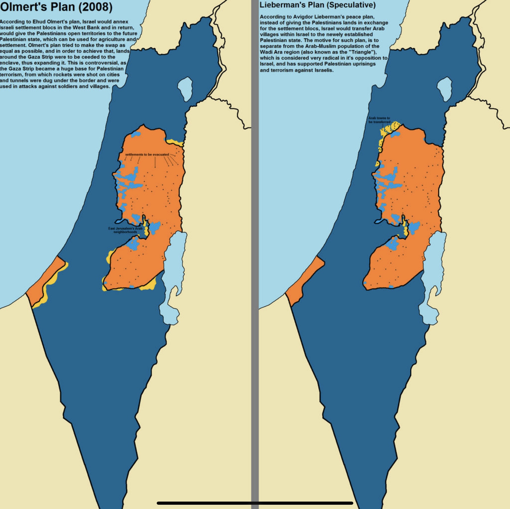 https://en.wikipedia.org/wiki/Triangle_(Israel) on the Jewish side of the 1967 borders will be exchanged for Jewish Settlements on the Arab side of the 1967 borders that are inside the “Seam Zone”