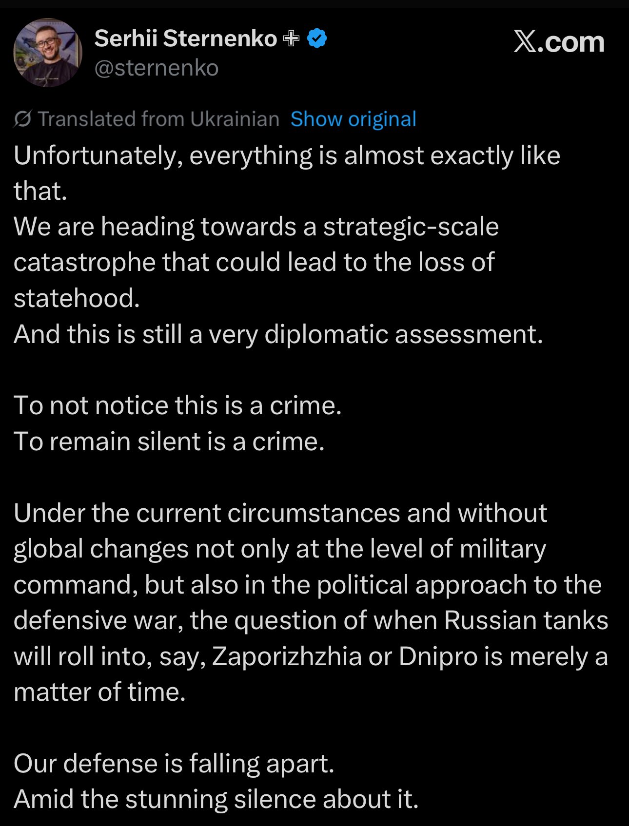 >>2570103They say Russia has not made this much gains since 2022 when invasion started with the 3-days-to-Kiev operation.