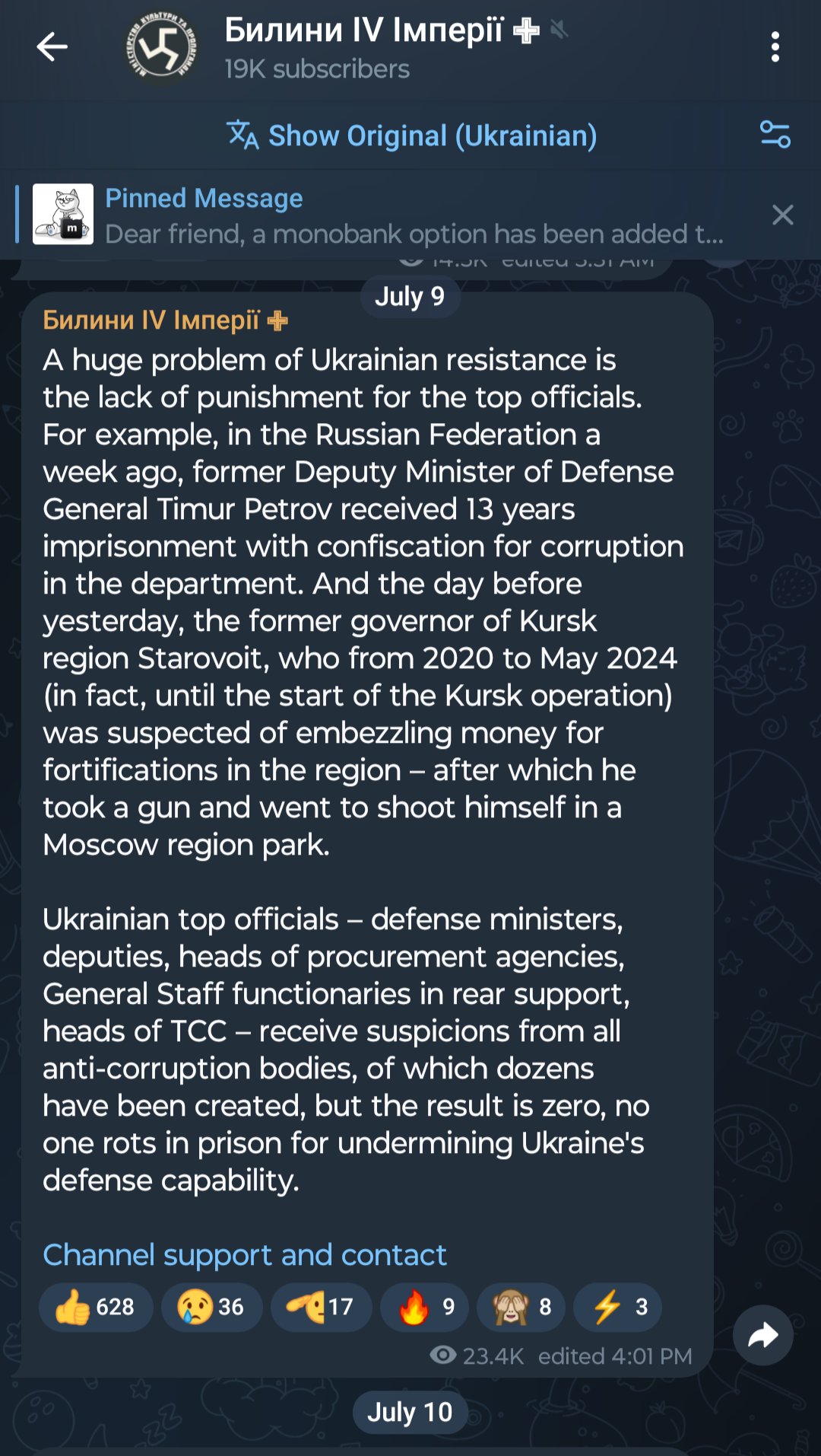 >The NABU recordings, in particular, feature the president's friends, Timur Mindich and Serhiy Shefir. Also mentioned are Cabinet ministers: Justice Minister Herman Galushchenko, Energy Minister Svitlana Grinchuk , and former Deputy Prime Minister Oleksiy Chernyshov . A SAP prosecutor reported that in the recordings, Mindich gave Galushchenko advice on how to best communicate with the president. According to the recordings, Zelenskyy called Galushchenko after receiving a text message from Mindich. Mindich himself left Ukraine for Israel several hours before the investigation began. Detectives believe he was the one overseeing the money laundering ." >>2559256>Money is very funny in a Banderite world edition. Is this a reference to some recent happenings?