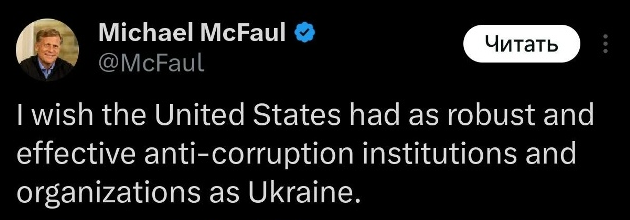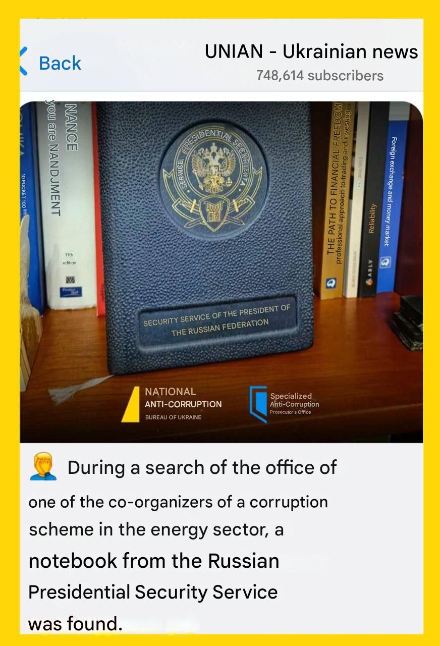 >As I said, NABU, which went against Zelensky's cronies, is US proxy in Ukraine: "NABU detectives met with a new FBI agent in connection with the Mindich case, sources say. Yesterday, detectives at the National Anti-Corruption Bureau of Ukraine met with the new FBI officer, who coordinates cooperation in all NABU investigations. This time, the meeting specifically concerned the case of Timur Mindich , a defendant in Operation Midas, a joint operation between NABU and the SAP.