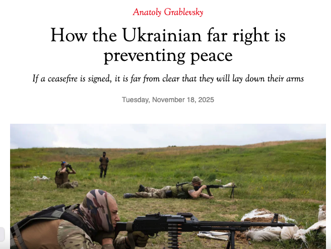 >>2570212>Since the start of the Russian invasion of Ukraine in February 2022, discussion of the Ukrainian far right has been verboten in western media, largely because one of Vladimir Putin’s stated war aims is the “denazification” of Ukraine. Putin’s claim that Ukraine is a Nazi state has been recycled by Russian propagandists and the western party line has consistently been that while the Ukrainian military does have far-right strains, they are marginal and inconsequential. This may have been true in 2022, but things have changed significantly after almost four years of war. Today, far-right figures control some of Ukraine’s strongest military units, and neo-Nazi ideology is displayed openly in the Ukrainian ranks.Talk about trying to have it both ways.