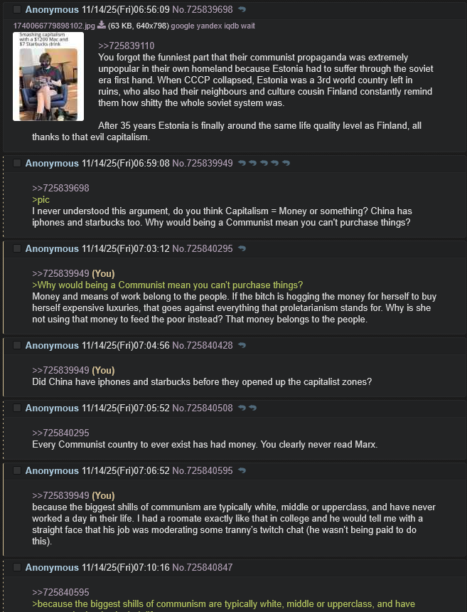 >>2559972You are quoting, out of context, on purpose, the part of my post that I literally say is a misconception I see other people have on leftypol, and then you pretend like that misconception is my opinion even thought I explicitly say it's a misconception I see other people have. Then you have the nerve to say I am "English Second Language" (ironically, Marx was ESL) even though you cherry picked a quote out of context to get mad at it and refute an argument I wasn't making. What the fuck is wrong with you? Honestly. On top of this you want to pretend to be the #1 Marx understander but can't put forward a single citation. Marx did say that a peaceful transition might be possible in some countries, but we have to reckon with the fact that the entire history of the 20th century, which he did not get to witness, passed by without these predictions coming true. Now we are in the 21st century and the USA is a country committing genocide. Anyone adocating a peaceful transition to "socialism" in this country is advocating specifically the forms of "socialism" Marx/Engels were denouncing as early as 1847 and deliberately contrasting with Communism. Nearly all popular "socialists" in the USA right now are advocating specifically for a break up of monopolies, a strengthening of small business, and welfare capitalism. These are Rooseveltian doctrines that kick the can down the road and postpone actual scientific socialism.