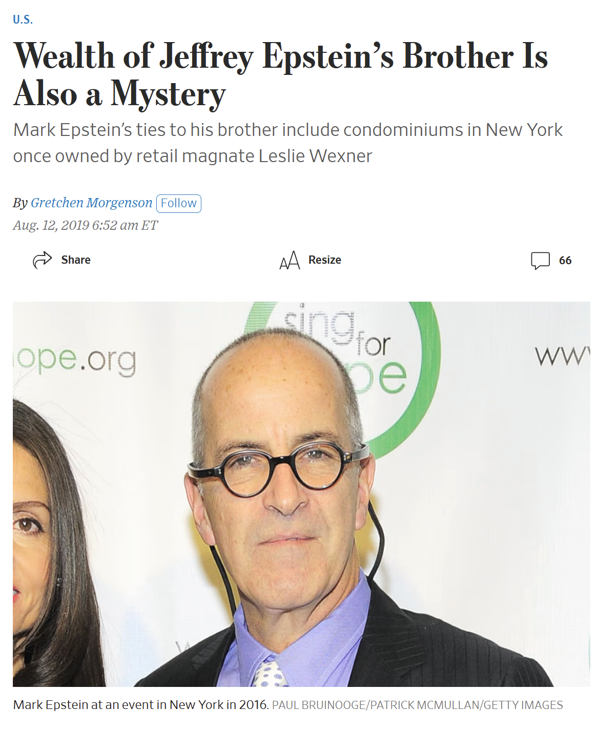 >Mark Epstein’s ties to his brother include condominiums in New York once owned by retail magnate Leslie Wexnerhttps://nymag.com/nymetro/news/people/n_7912/This International Money Man of Mystery also sounds sketch.