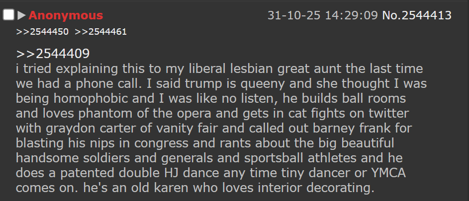 >>2560166It'd be really funny if Trump is covering up the whole Epstein thing because of that and not because he's a pedo
