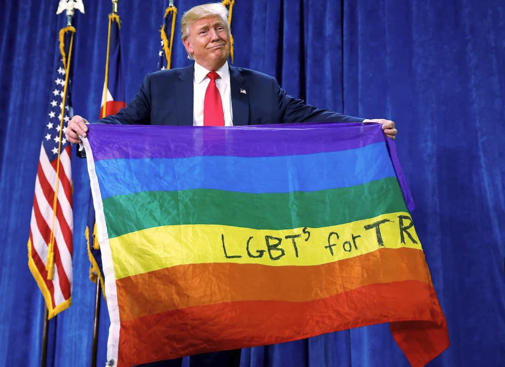 As he said the final line, Trump made a gesture toward his chest that indicated large breasts.