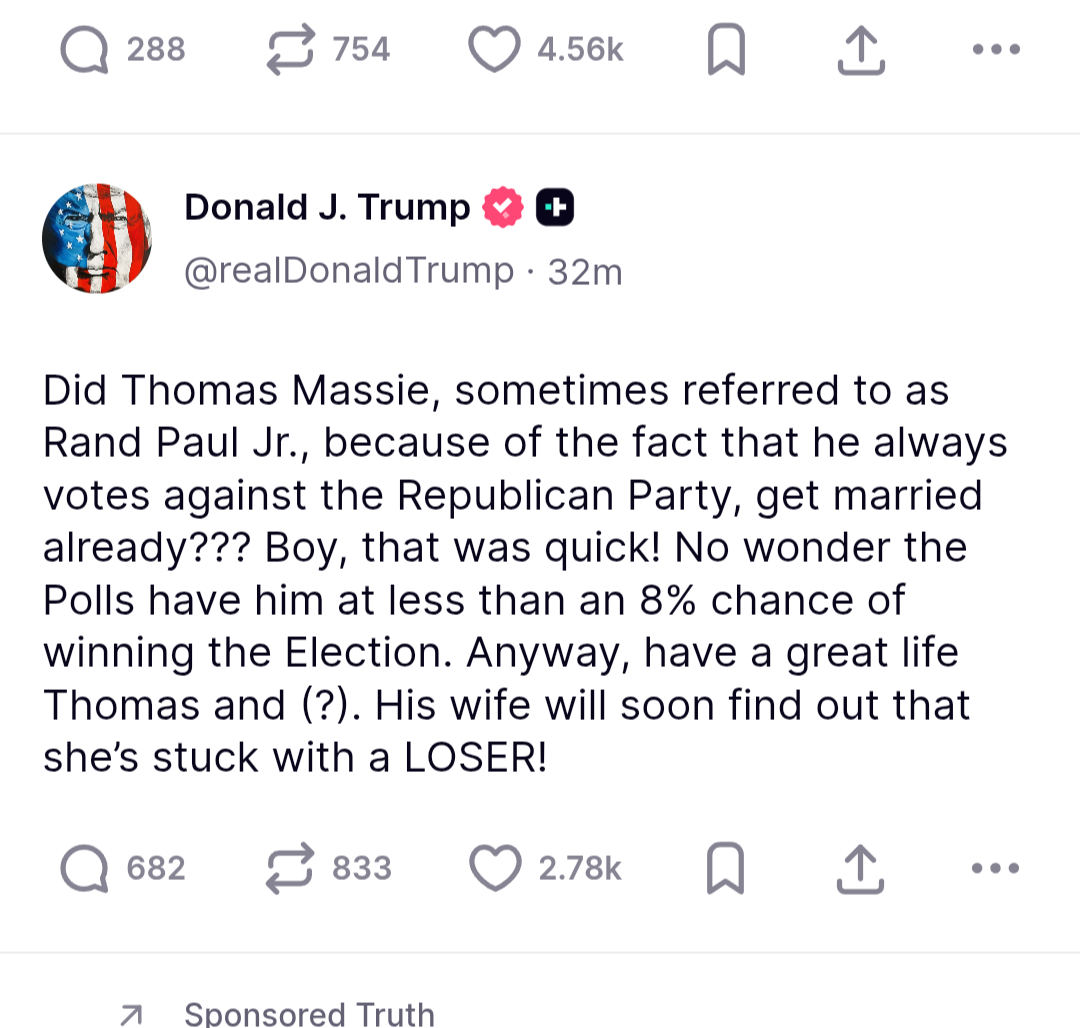 >>2560152we might see a split in post 2016 populist/isolationist right between trump loyalists and people who don't willingly glaze a pedophile. tbh I think this is where ppl like MTG and thomas massie are positioning themselves