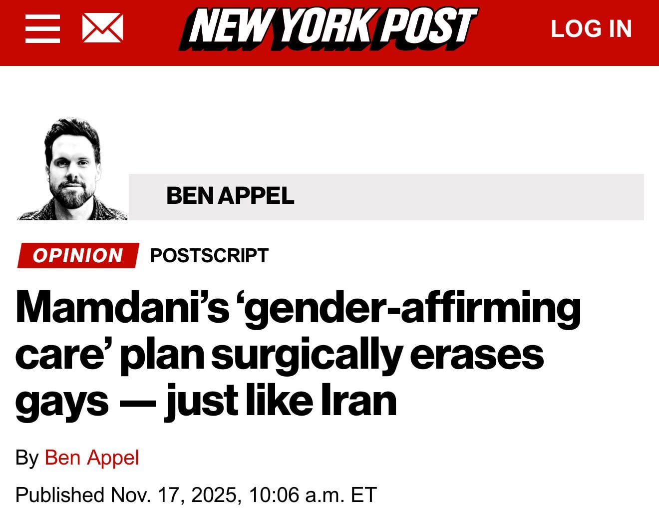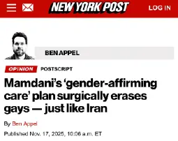 >>2564636there is a long standing rumor, idk if it's true, that gay men are forced to transition in Iran, I think the author of the New York Post slop may be referring to that, and accusing Mamdani of that