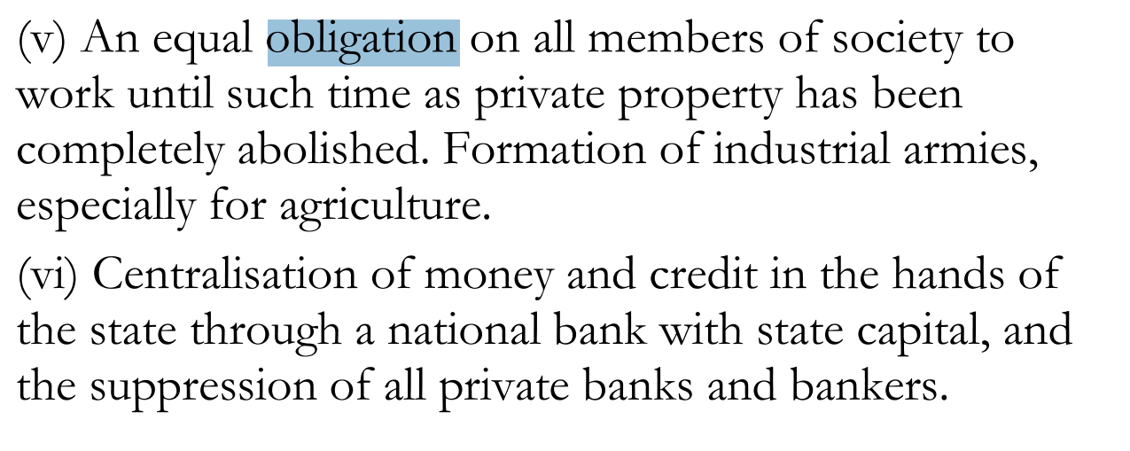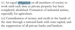 >>2566246>there's no meaningful difference between capitalism and communismwrong, that is not what was stated. under SOCIALISM (not communism) which is the dictatorship of the proletariat, which transitions society from capitalism to communism, there is an equal obligation of ALL members of society to work, and there is centralization of money and credit in the hands of the state through a national bank with STATE CAPITAL (see image from post