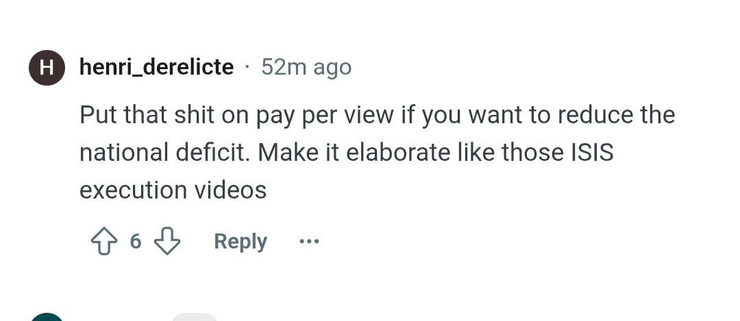 >Things are going to continue to happen in the stupidest ways possible that no one really takes seriously, where every single person compulsively reacts with either cynical grifting or useless panic and appealing to a political system of liberal democracy that is entirely dead and irrelevant. things will continue to get gradually worse, more people will lose their jobs and homes, the most destitute and marginalized will be oppressed by state-backed domestic terrorism, but the decay will simply continue and everyone who isn't actively being imprisoned and forced into slavery or outright exterminated will simply ignore it and maintain a cognitive dissonance of believing a civil war is happening while living their lives in a mostly normal fashion. The death of the United States will be slow, painful, and insufferably annoying and stupid. <Death to the scourge of the earth, the destroyer of nations, the father of fascism, the enabler of ethnostates, the treatlerite tyrant, the protector of pedophiles, the exporter of ecocide, the captain of capitalism, the king of coups, the sultan of sanctions, the emir of the embargo, the autocrat of austerity, the doge of deregulation, the baron of busting unions, the prince of privatization, the lord of loan sharks, the patron-saint of proxy wars, the sponsor of settlers, the guarantor of genocides, the invader of islands, the Divided $nakkkes of Amerikkka™ 🛠️ Strike Tracker ⚒️https://striketracker.ilr.cornell.edu/🇺🇸 Deeds of the Burger Reich 🇺🇸https://github.com/dessalines/essays/blob/main/us_atrocities.mdhttps://williamblum.org/essays/read/overthrowing-other-peoples-governments-the-master-list📺 Glowie News 📺(sponsored by the Burger Eagle Freedom Institute (formerly USAID))