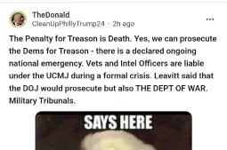 So Trump apparently is calling for Democrats to be put to death over… telling troops to disobey unlawful orders.