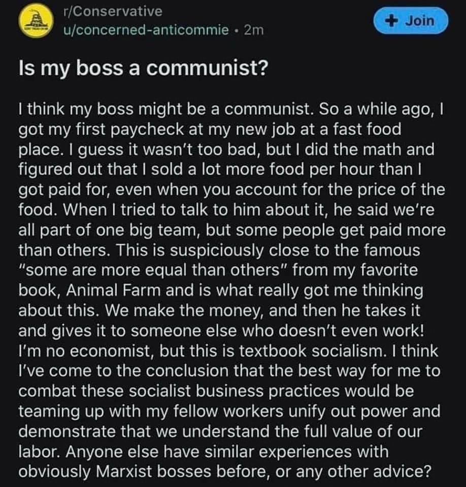 >>2568580Seems counterproductive to hide your ideology out of fear of what others will think of the word "communist"