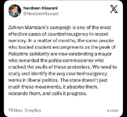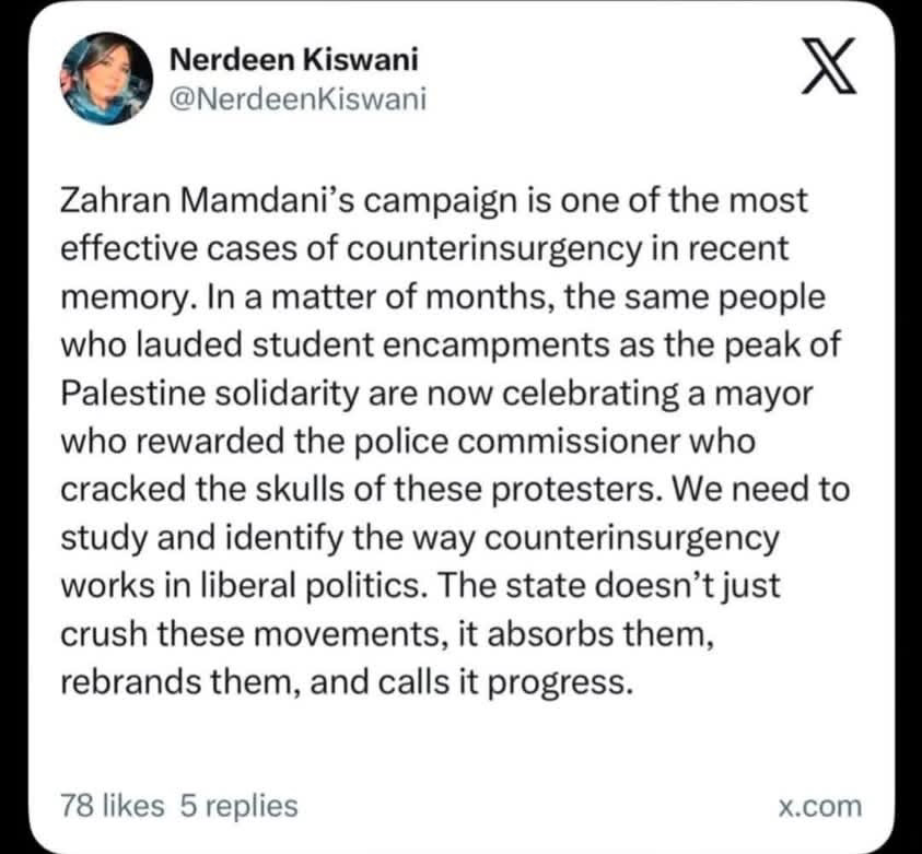 >>2570216>in a matter of months, the same people who lauded student encampments as the peak of Palestine solidarity are now celebrating a mayor who rewarded the police commissioner who cracked the skulls of these protesters.actually existing pessimism (realistic, admitting we have a lot more work to do in an uphill battle)
