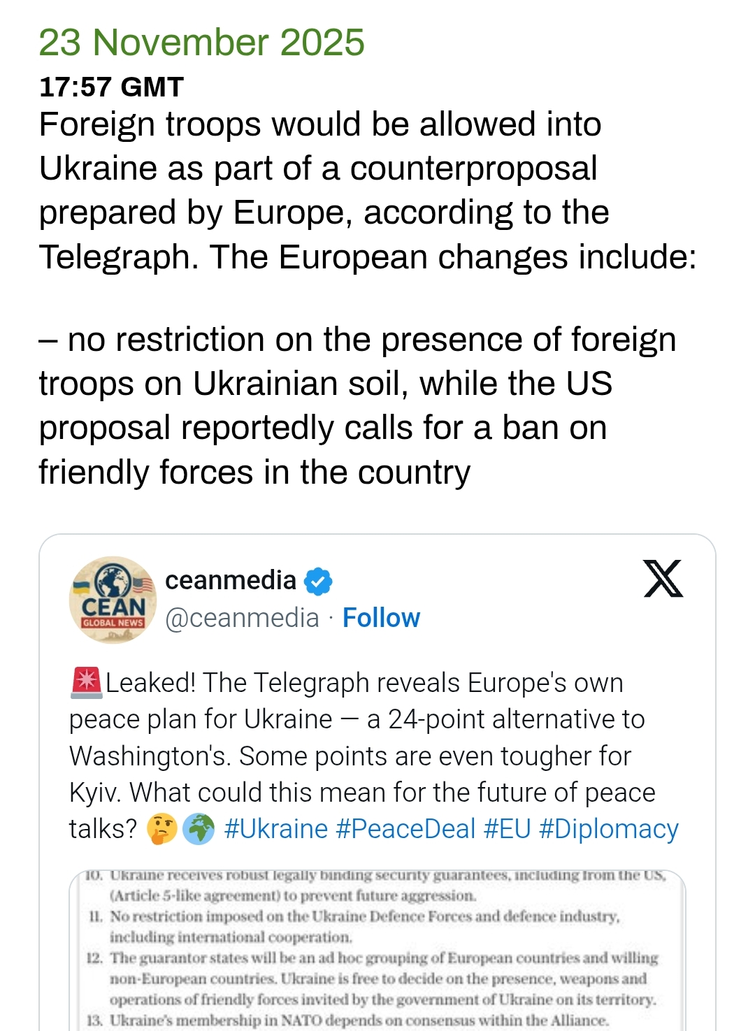 – Counter-proposal for a softening of the language around restricting NATO in Europe.