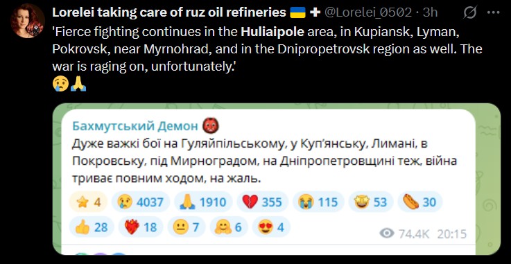 The Russian army makes its best gains when the civvie boomers aren't killing morale by licking America's balls and pretending that America is a legitimate mediator.