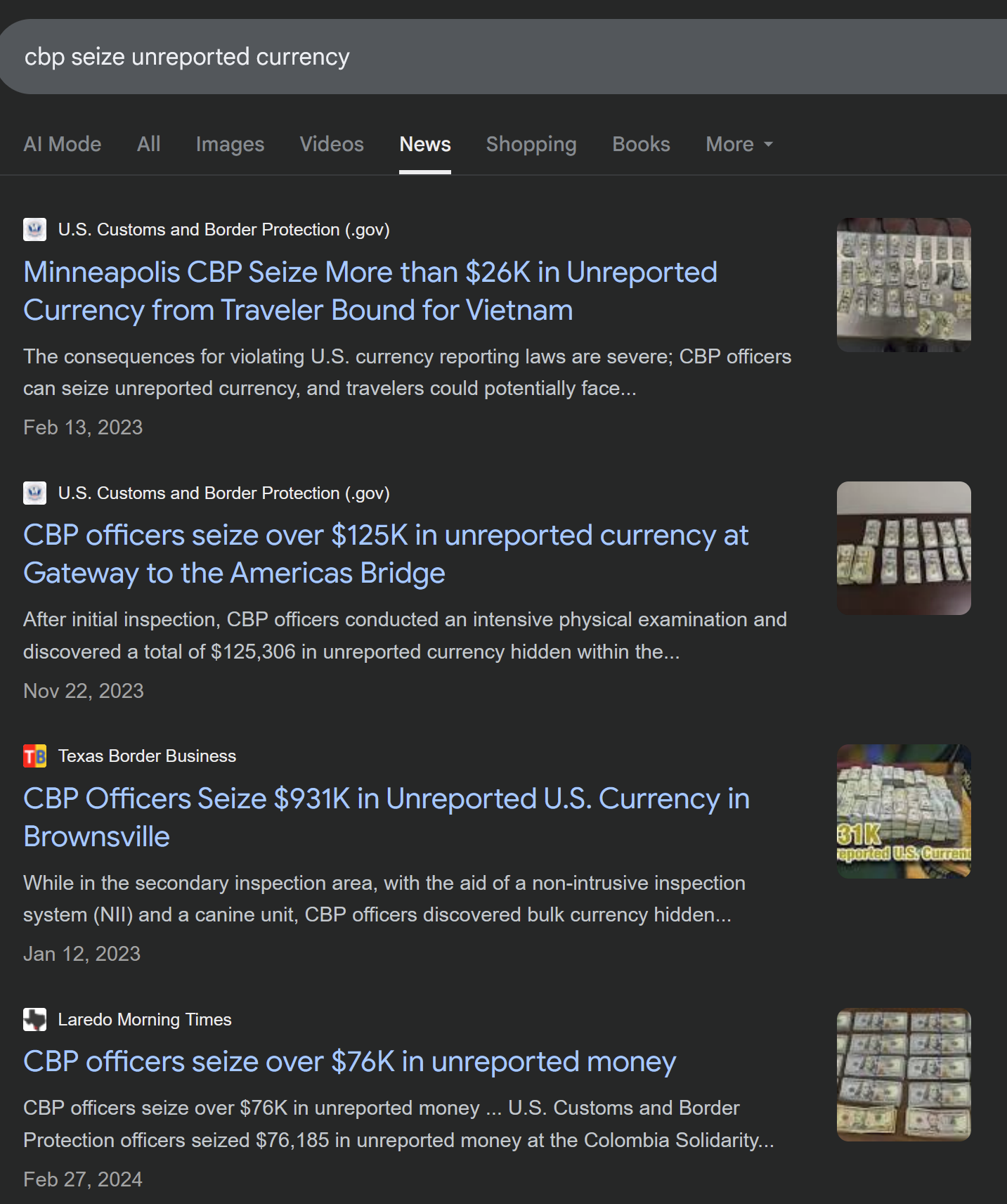 >>2572503It says right there in your article. It's the law that you have to declare the money you're bringing over the boarder if it's more than $10k