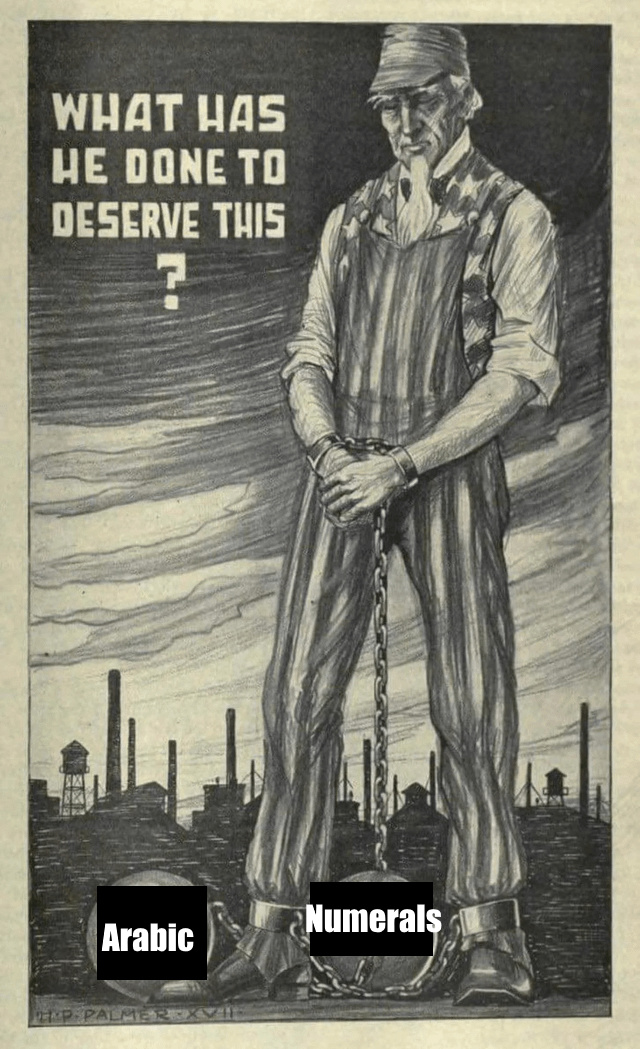 >>2578324Wow, I was graduated (proper syntax) from high school in the late '80s and I was pretty sure everyone knew about Arabic numerals. Is this a result of defunding arts and sciences in favor of STEM? Can millennials still write cursive? What a mess…