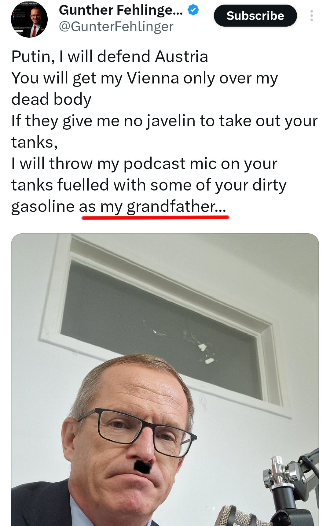 This war feeds the nationalism - the biggest bourgeois psyop there is - of both camps and in doing so imposes class concord everywhere at once with even self claimed leftist bombastically thumping their chest about how their bourgeois dictatorship is doing good against evil. Westoids are happy, Ruzzionistas are happy, everybody is happy, the war must go on.