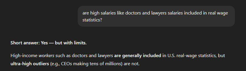 >>2581877I'm stupid, I misread your question as where did this increase in wages come from, and I was speculating that possibly only people with already high salaries saw significant real wage increase, since high salaries are sometimes included in misleading American "real wage" statistics