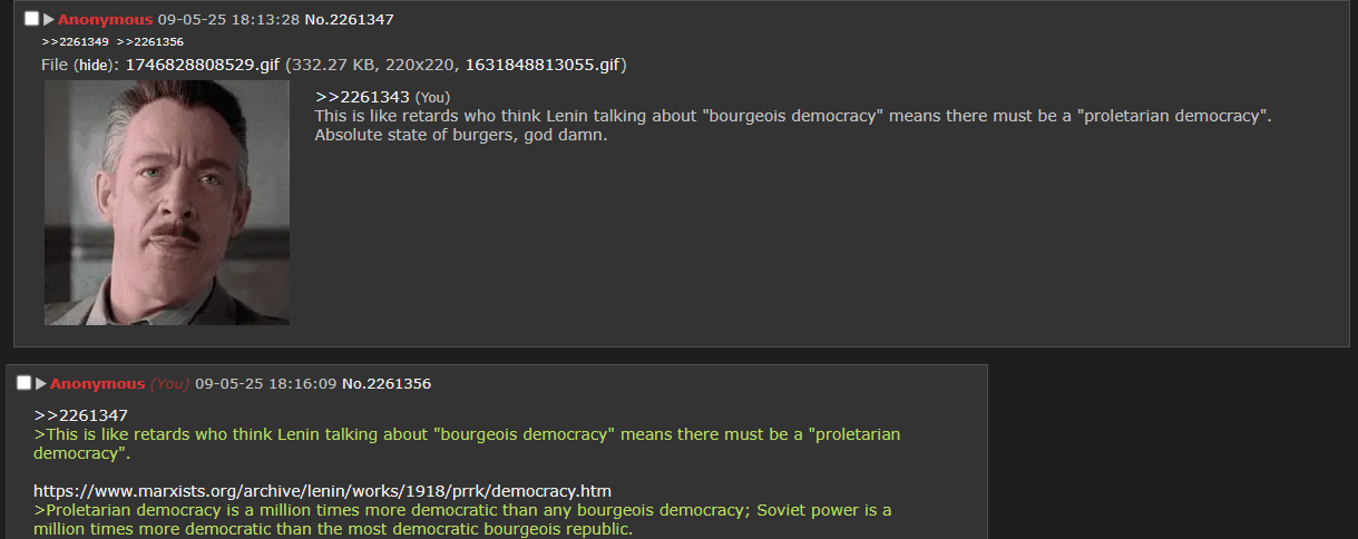 >>2589252>Yeah this is why democracy is retarded*bourgeois democracy