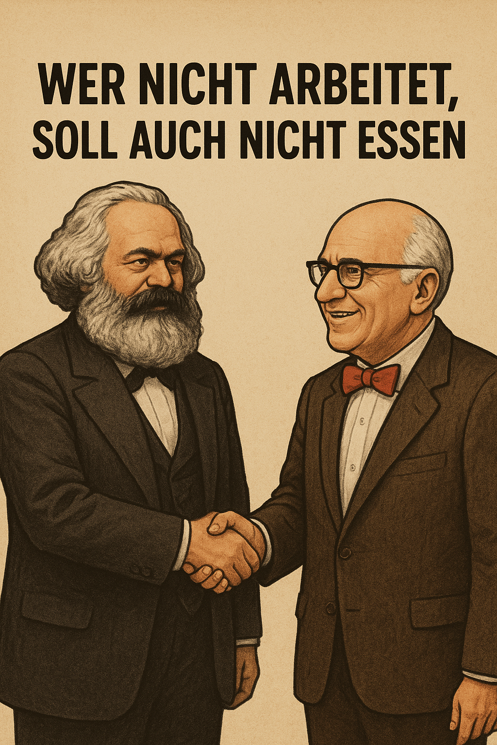 * Der Fehler: Auch der Marxismus glaubt an ein Ziel (den Kommunismus). Das ist Teleologie – ein säkularer Ersatz für das Paradies. Ein falsches Versprechen von Sinn.