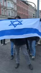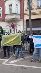 - pro-Israel Antifa und pro-Palästina stehen sich gegenüber, beide rufen "alerta alerta, antifascista"