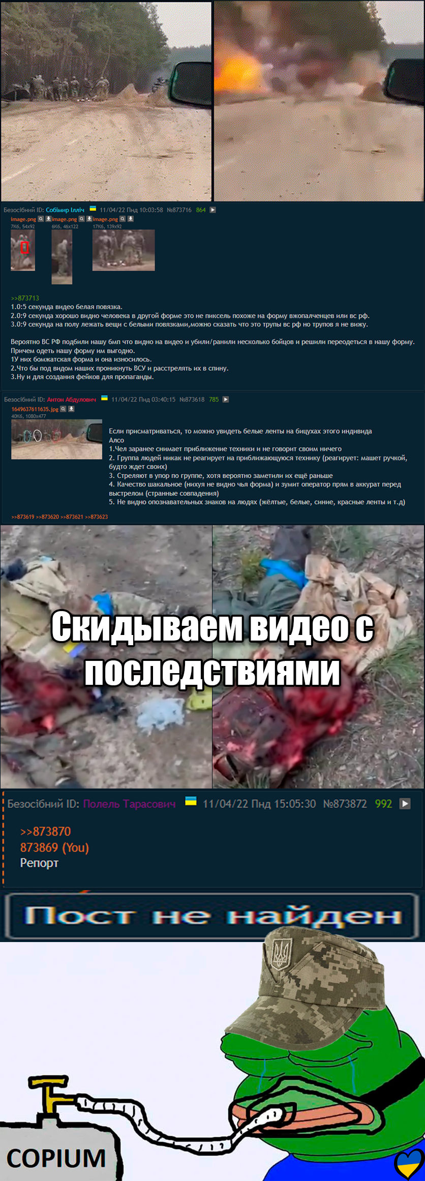 >>2587034Context: Ukrops were looking for ghost pixels proving that the people shot by that tank were Russians, for like a couple of days they've been explaining to themselves how it oculdn't have been Ukrainian losses caught on camera. SO