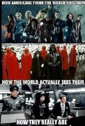 Then everyone saves (liberal)democracy together from some made up,bipartisan boogeyman (again) and the USA commits an unspeakable atrocity somewhere else in the world (again).
